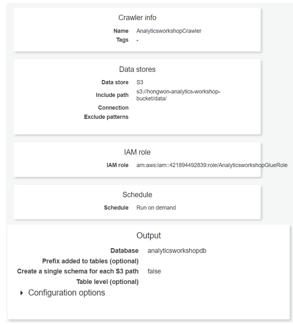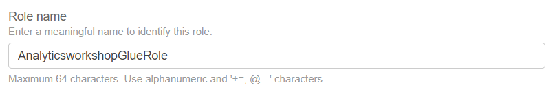 - role name : analyticsworkshopglueRole