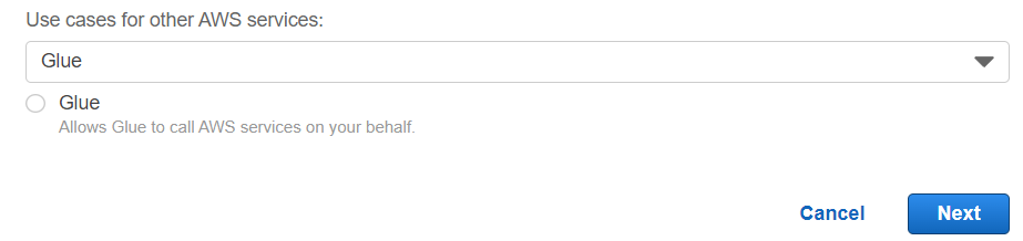 - create role - glue 서비스 선택