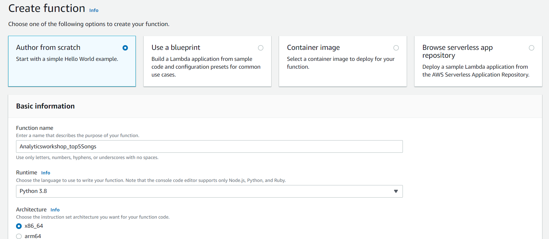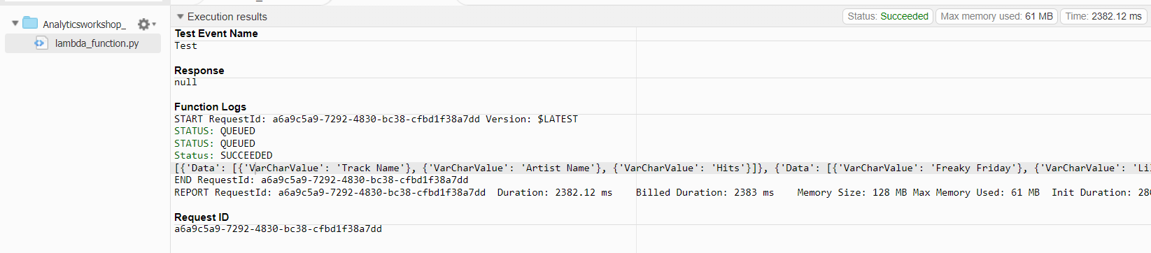 - Function name : Analyticsworkshop_top5Songs