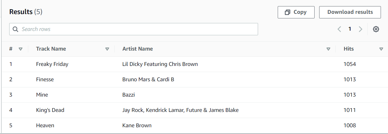 - 람다 함수를 작성하여 Athena가 S3의 processsed data에서 Hits 별 Top 5 Popular Songs를 쿼리하고 가져 오는 코드를 호스팅