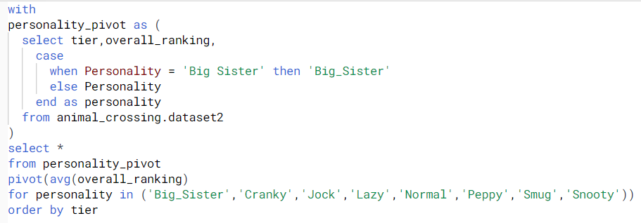 - case 문을 사용하여 Big Sister을 Big_Sister로 변경하여 피보팅 하였습니다.