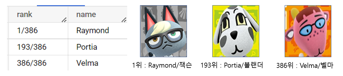< Kaggle - Animal Crossing Portal Villager Popularity > - 유저가 선호하는 동물 랭킹 데이터 셋