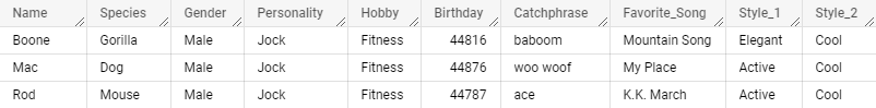 < Kaggle - Animal Crossing New Horizons Catalog > - 동물들의 특성을 기록한 데이터 셋