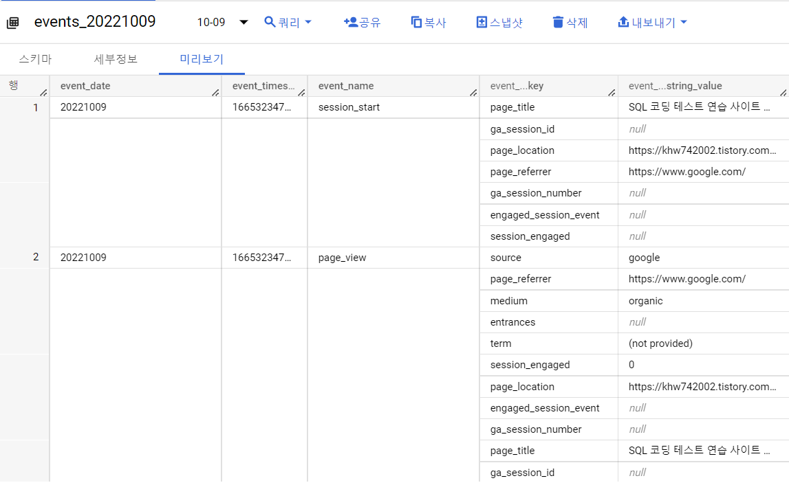 GA 분석 내용이 아닌 더 높은 레벨의 분석을 위해서 로우 데이터 분석이 필수적입니다. GA4는 Bigquery와 무료로 연동하여 로우 데이터를 받아볼 수 있습니다. 이번 글에선 SQL로 직접 제 블로그 사용자의 로우 데이터를 분석해보겠습니다.