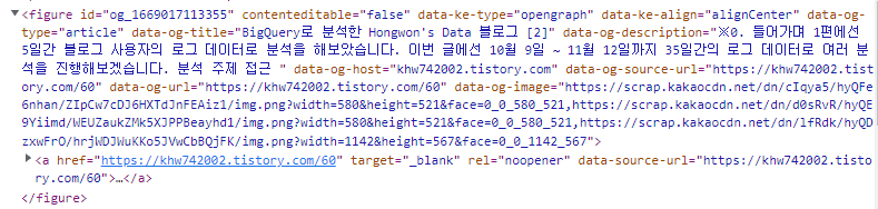 이제 이해가 되실 겁니다. 파란 박스의 [#og_1669017113355 > a]는 해당 id의 figure을 특정하고, 링크(<a>) 를 클릭하는 버튼을 뜻합니다.