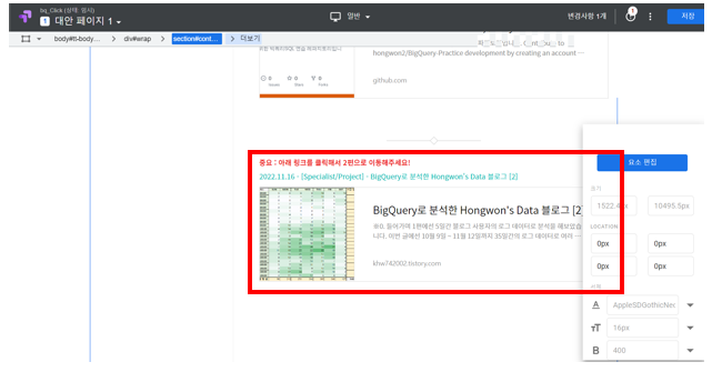 저는 처음 목표대로 빨간 박스 속 구성들을 상단으로 옮겼습니다.