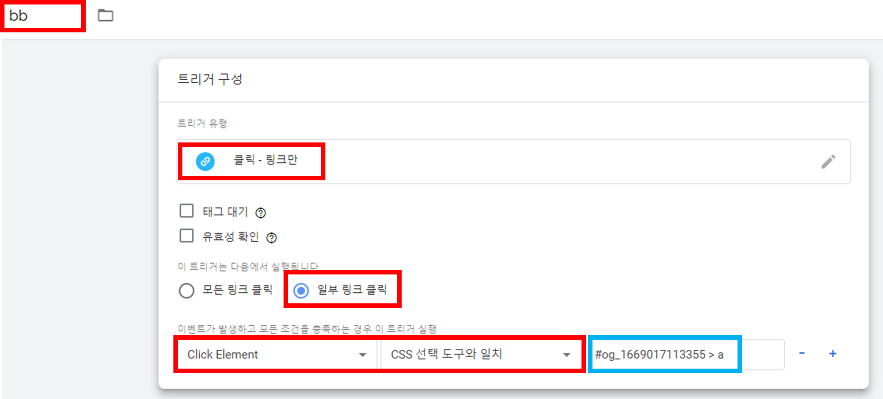 bb : 이름 설정 (트리거의 이름이므로 중요하진 않습니다.)