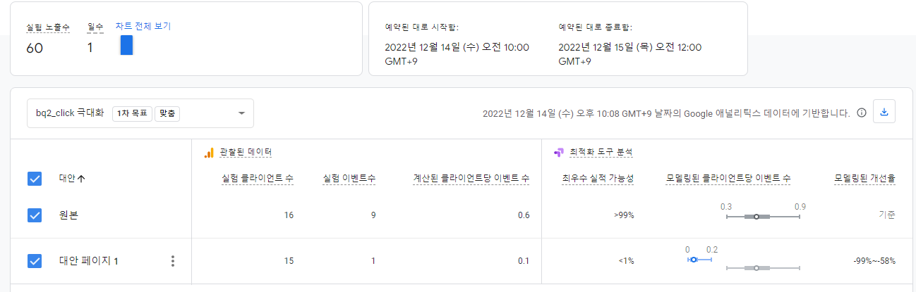 수고하셨습니다. A/B 테스트를 위한 모든 과정이 끝났습니다.
