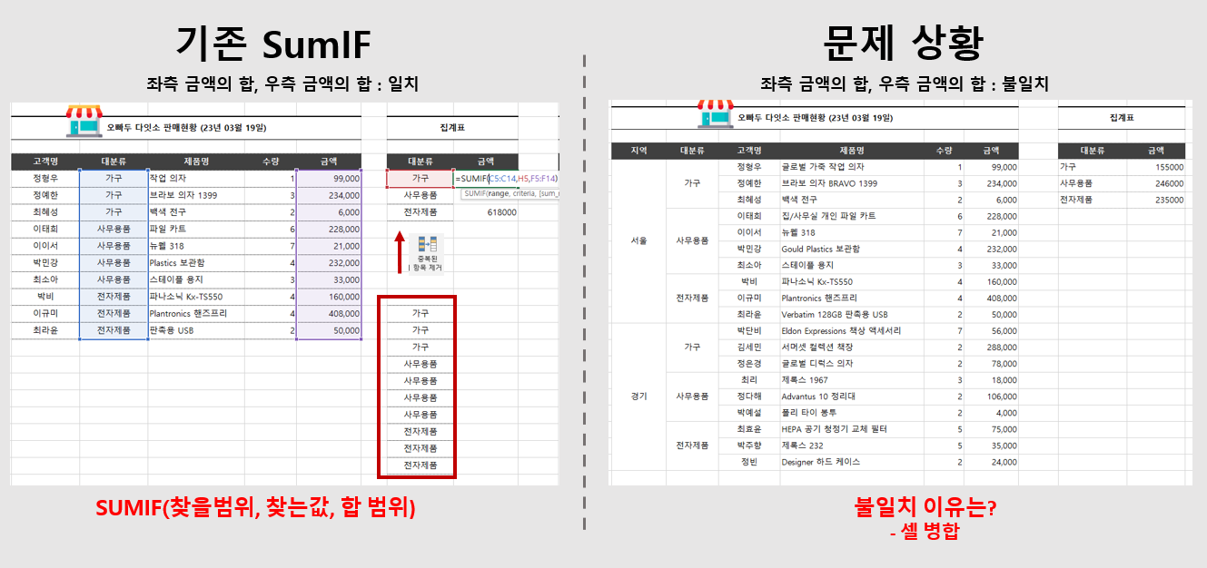 SUMIF 계산이 잘못되는 문제가 발생합니다.