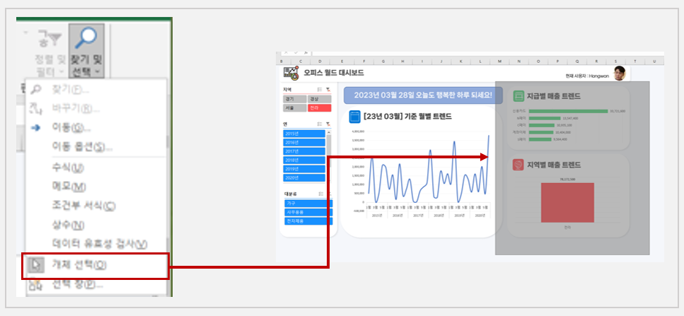 개체 선택으로 PPT와 같이 Drag로 개체 선택 활성화!