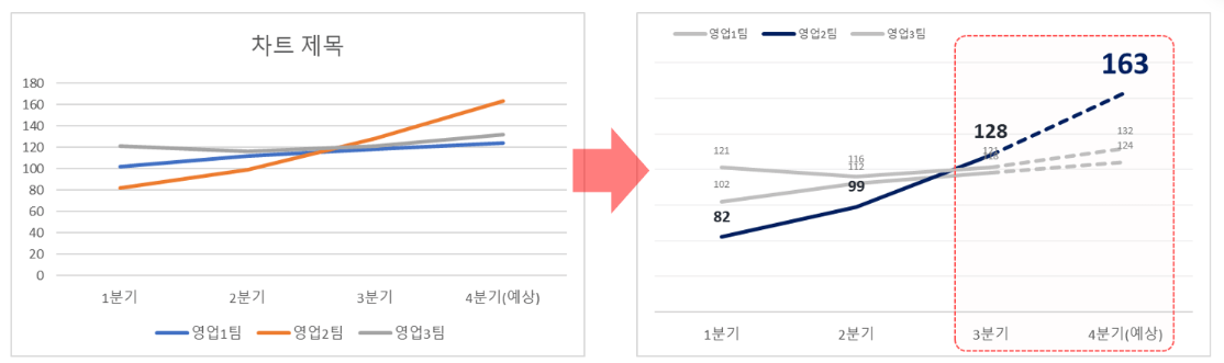 - 차트 색상은 최대 3개를 넘기지 않습니다.